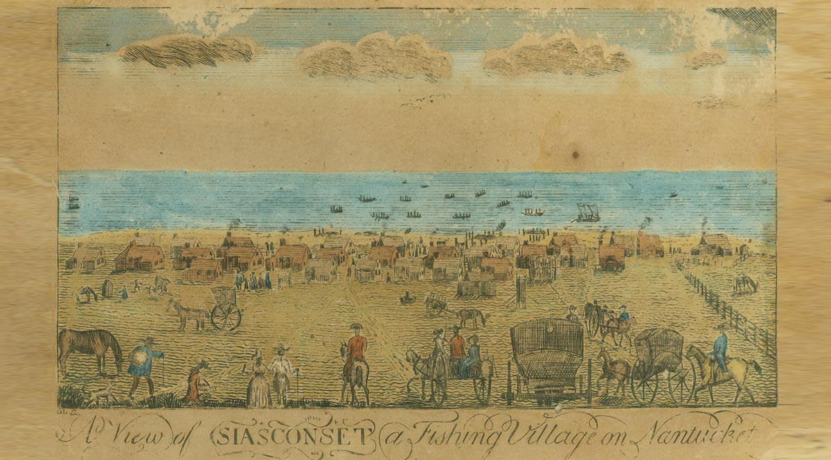 Banner image of A View of Siasconset a Fishing Village on Nantucket, colored engraving on paper, ca. 1797. 1933.0022.001