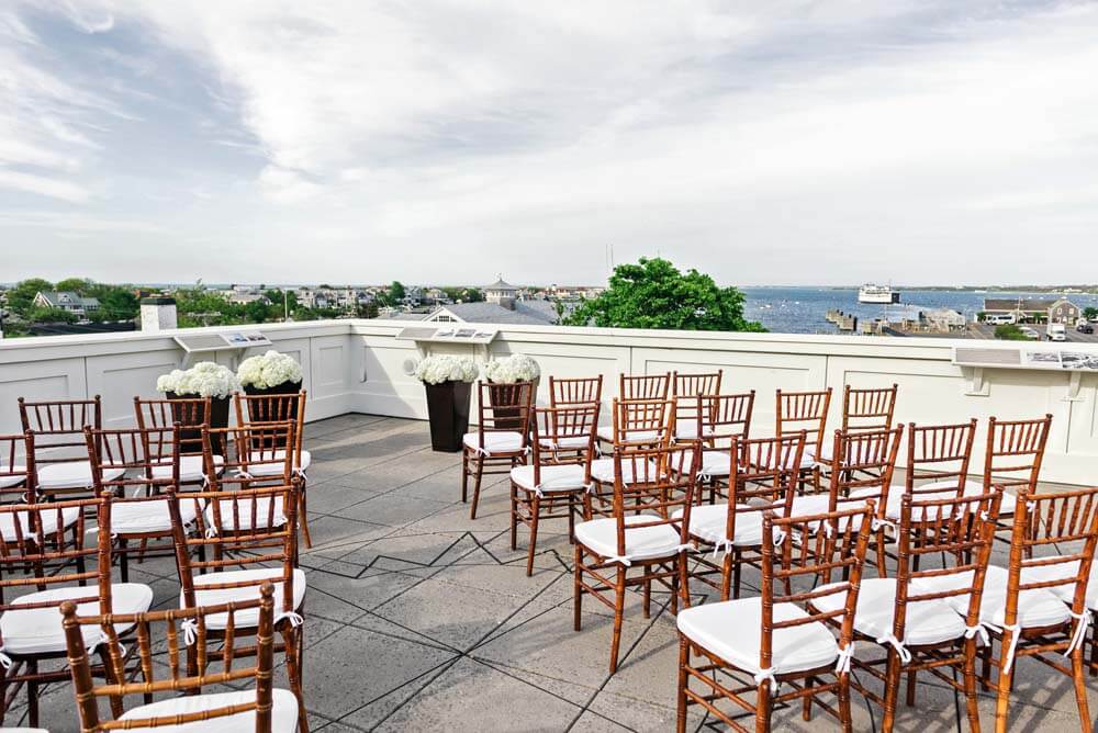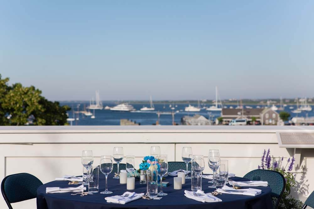 Offering unparalleled panoramic views of Nantucket Harbor, the Whaling Museum’s outdoor deck, Tucker’s Roofwalk, is the largest rooftop party space in downtown Nantucket.
