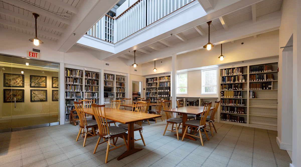 The intimate Whitney Gallery at the entrance to the library offers a display of Nantucket history and the light-filled reading rooms are a haven for historians, students, journalists, filmmakers, homeowners searching for information about their Nantucket houses, and genealogists filling in the branches of their family trees.