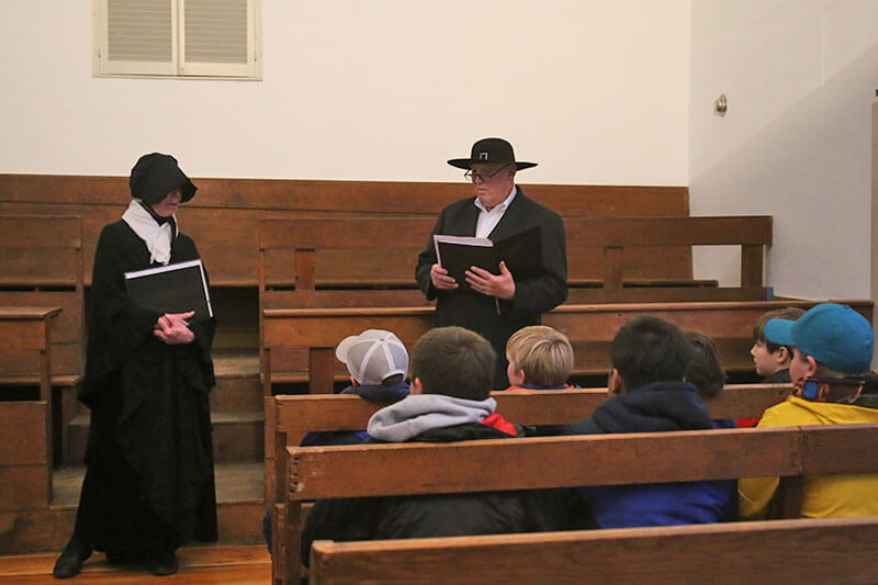 In 2014, the NHA developed a new overnight experience for the Nantucket New School. Fourth grade students travel back in time and tour downtown Nantucket, meeting historic figures along the way, before returning to the Whaling Museum for hands on experiences focused on whaling history. The night includes sea shanties, hands-on crafts, a scavenger hunt, and culminates in falling asleep underneath the 46-foot whale skeleton.